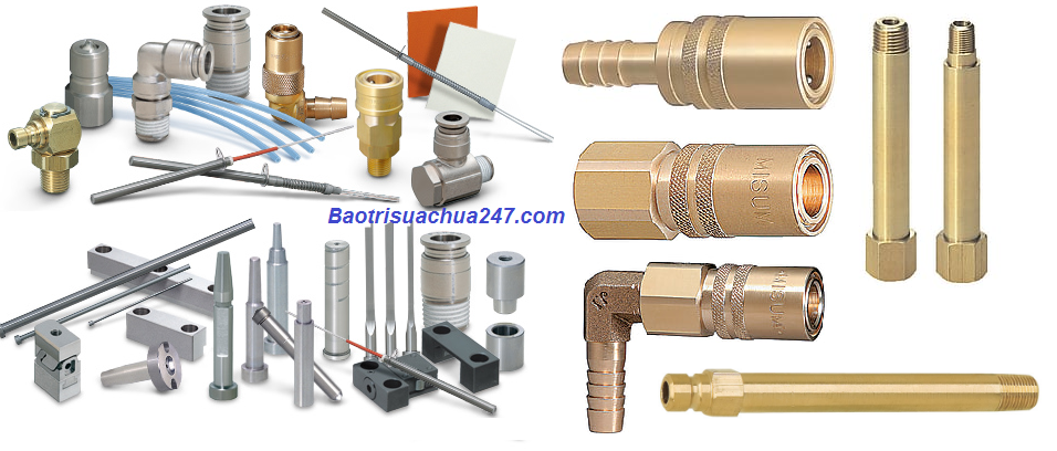 Các loại linh kiện chuyên dùng cho máy ép nhựa các loại: kìm cắt runner, chất bảo quản khuôn, chống dính, keo trét ron, đầu nối nước...