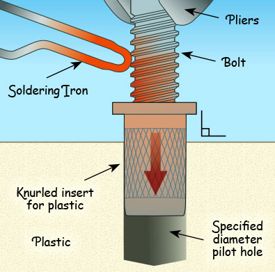 - Cấy nóng ( Gia nhiệt nóng): là cách dùng khá phổ biến trong sản xuất sản phẩm nhựa. Sau khi sản phẩm nhựa được tạo ra, người ta sử dụng 1 thiết bị để gia nhiệt Ốc đủ nóng đạt tới nhiệt độ có thể nóng chảy nhựa, sử dụng bộ ép CẤY ỐC vào trong sản phẩm dệ dàng.