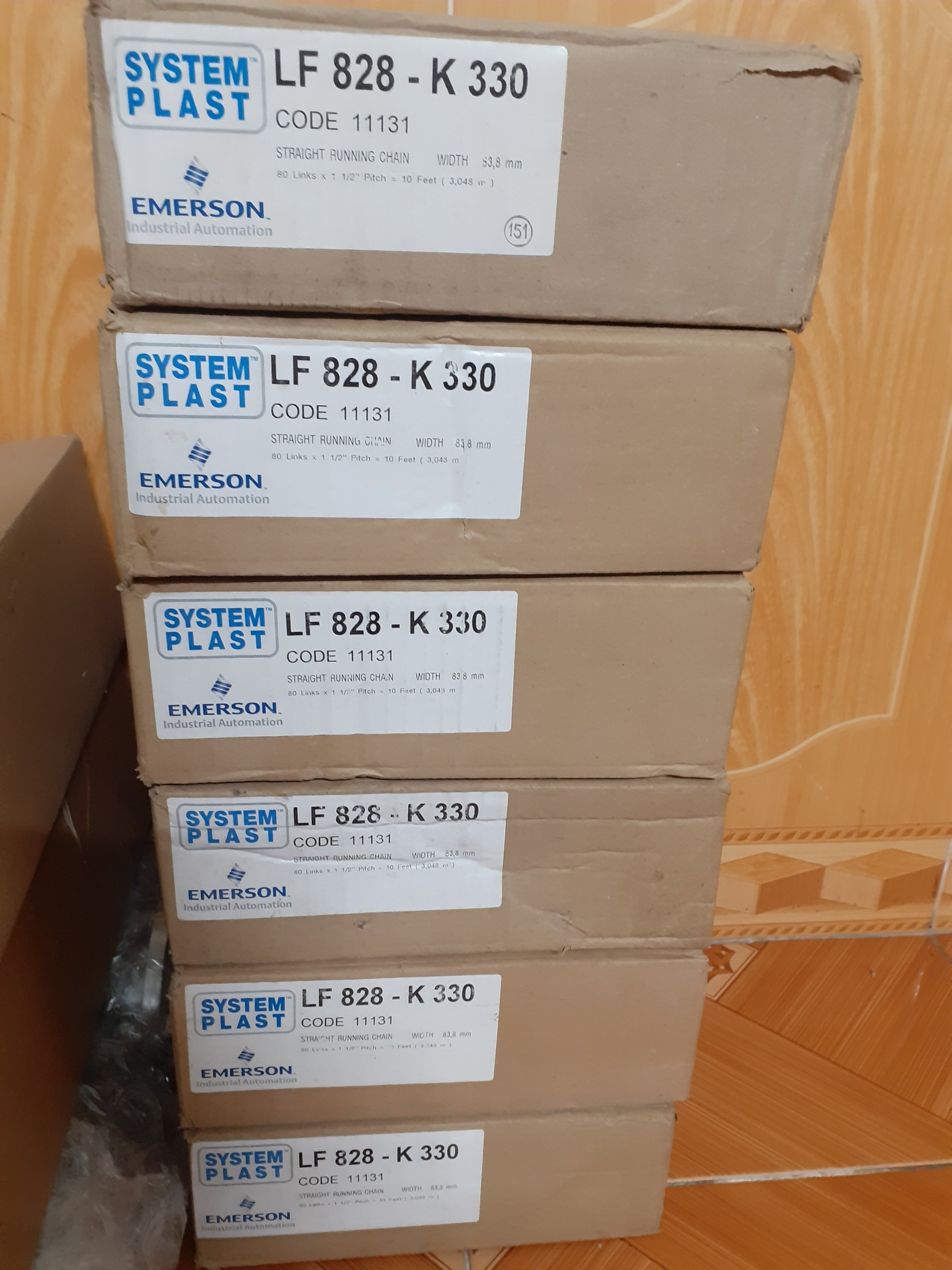 chiều dài xích mỗi hộp 3 mét, bề rộng 83.8mm dùng trong hệ thống băng tải chiết rót sản phẩm như bia, nước ngọt...