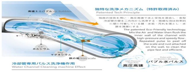 Nguyên lí làm sạch đường nước làm mát bằng máy Mizuken như sau: